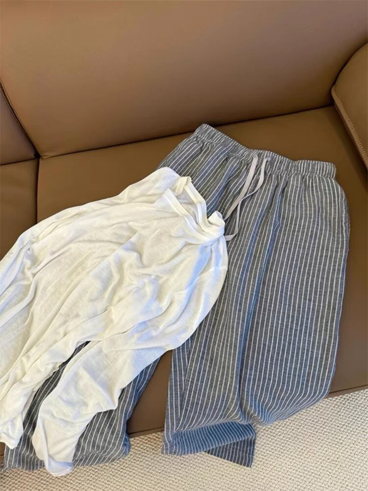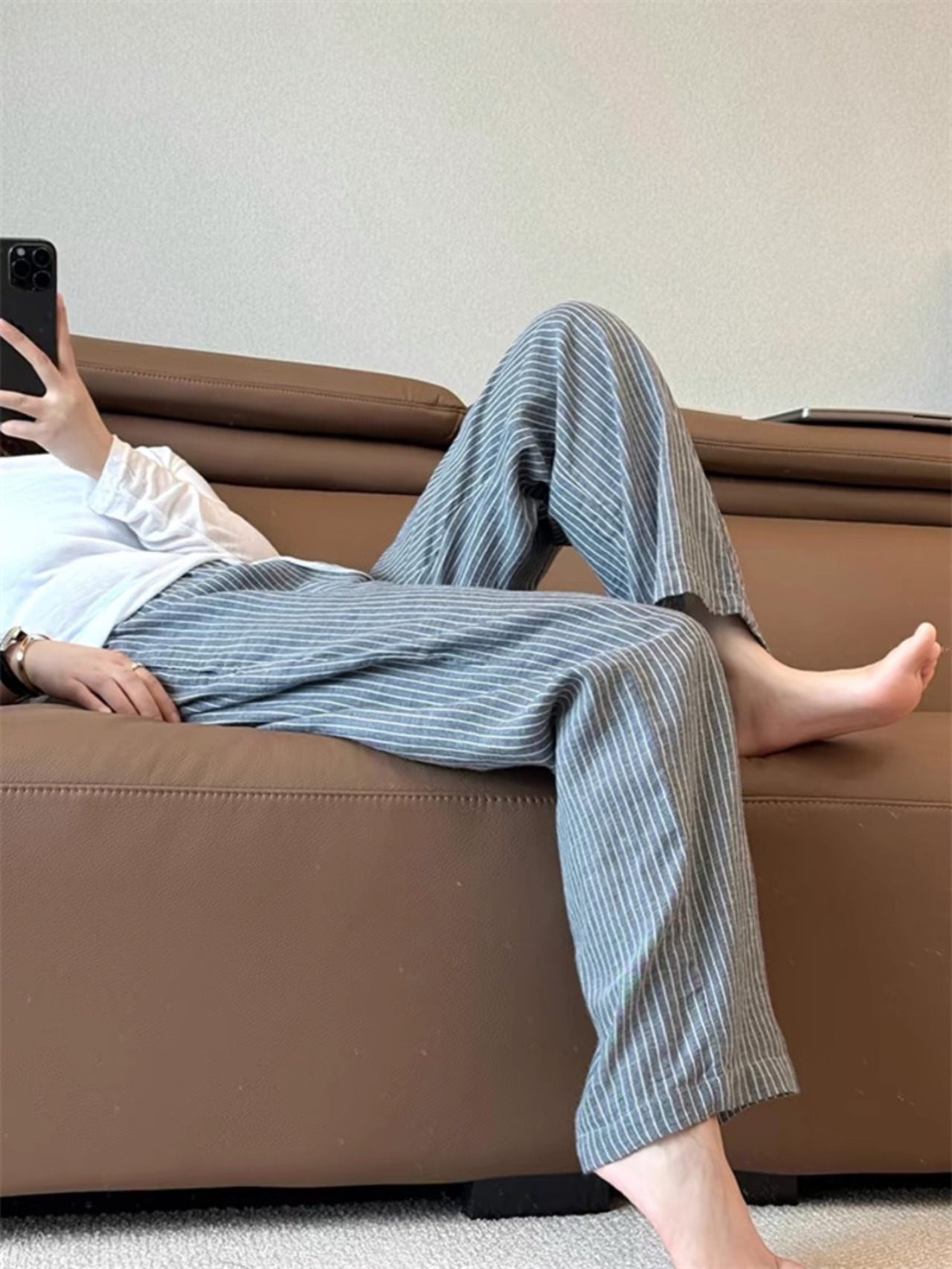 シンプルで持ちやすくて機能的 ロングパンツ スラックス ストライプ 快適である 綿麻 ひもを引く