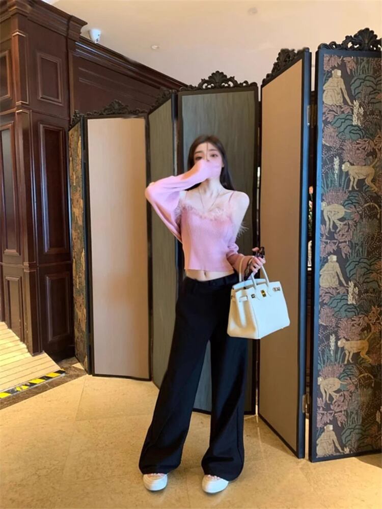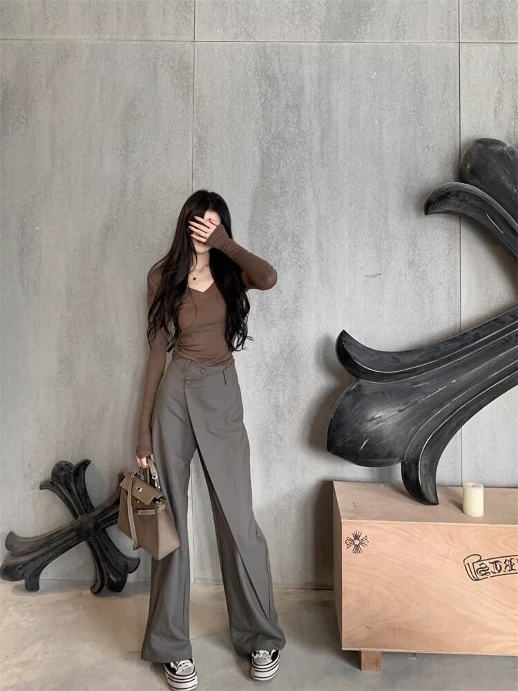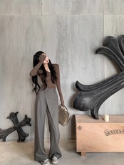 ロングパンツ スラックス トレンド ハイウエスト スーツパンツ