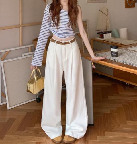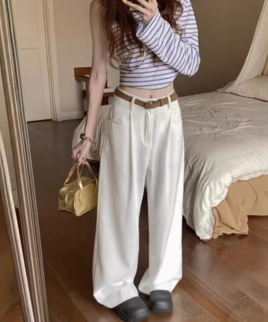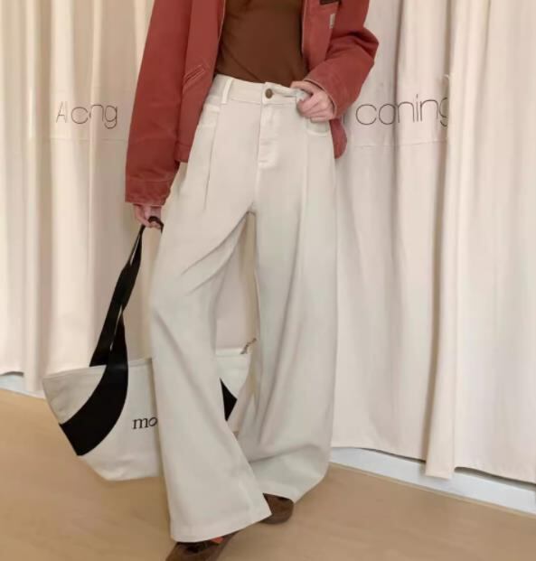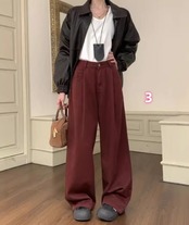 春秋新作 レディース ボトムス ハイウエスト カジュアル パンツ スラックス ワイドパンツ