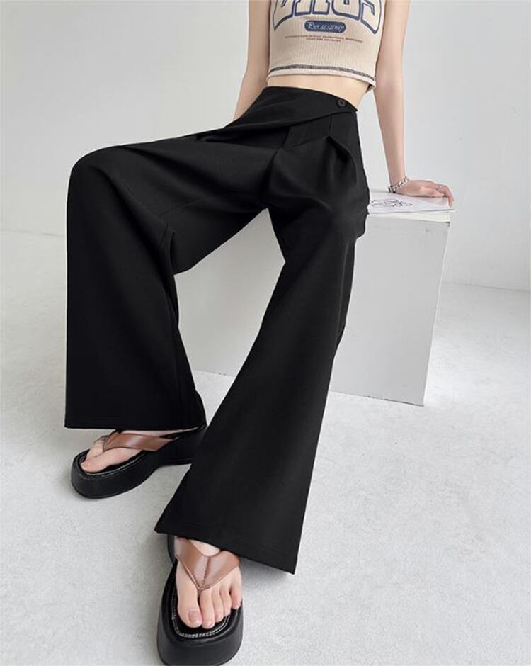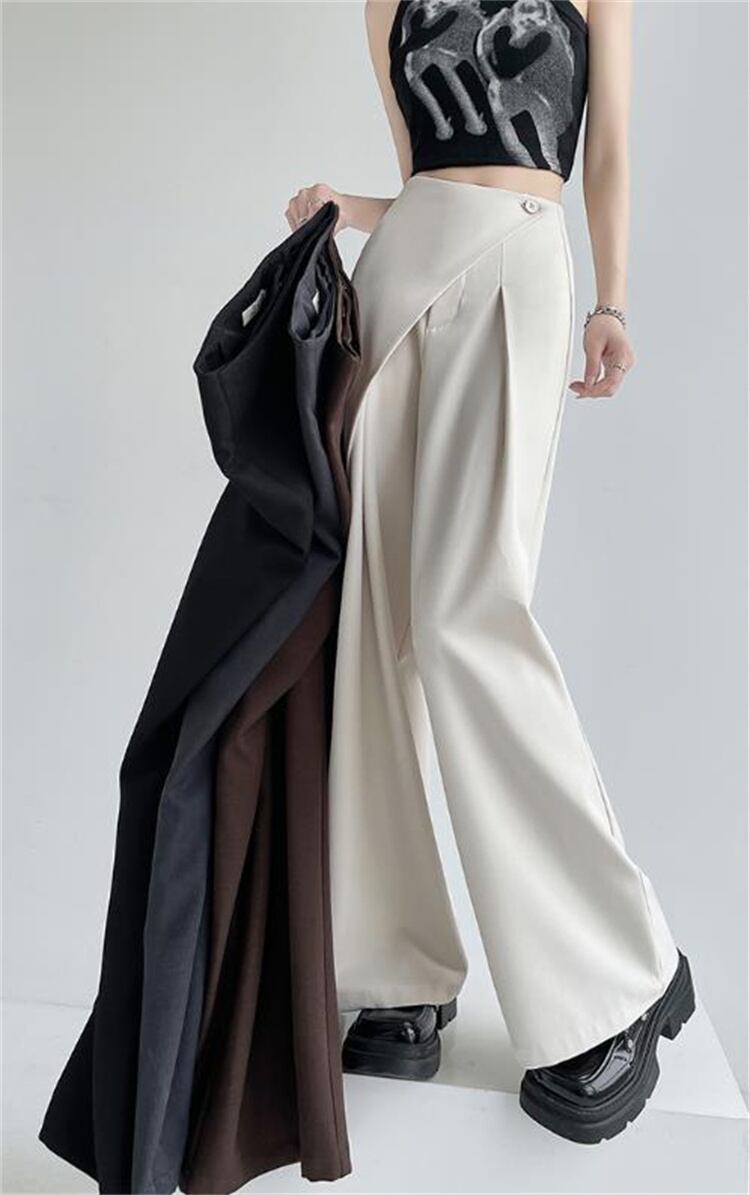 個性的なデザイン ストレートパンツ カジュアル スラックス おしゃれな スーツパンツ ワイドパンツ