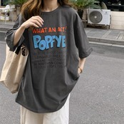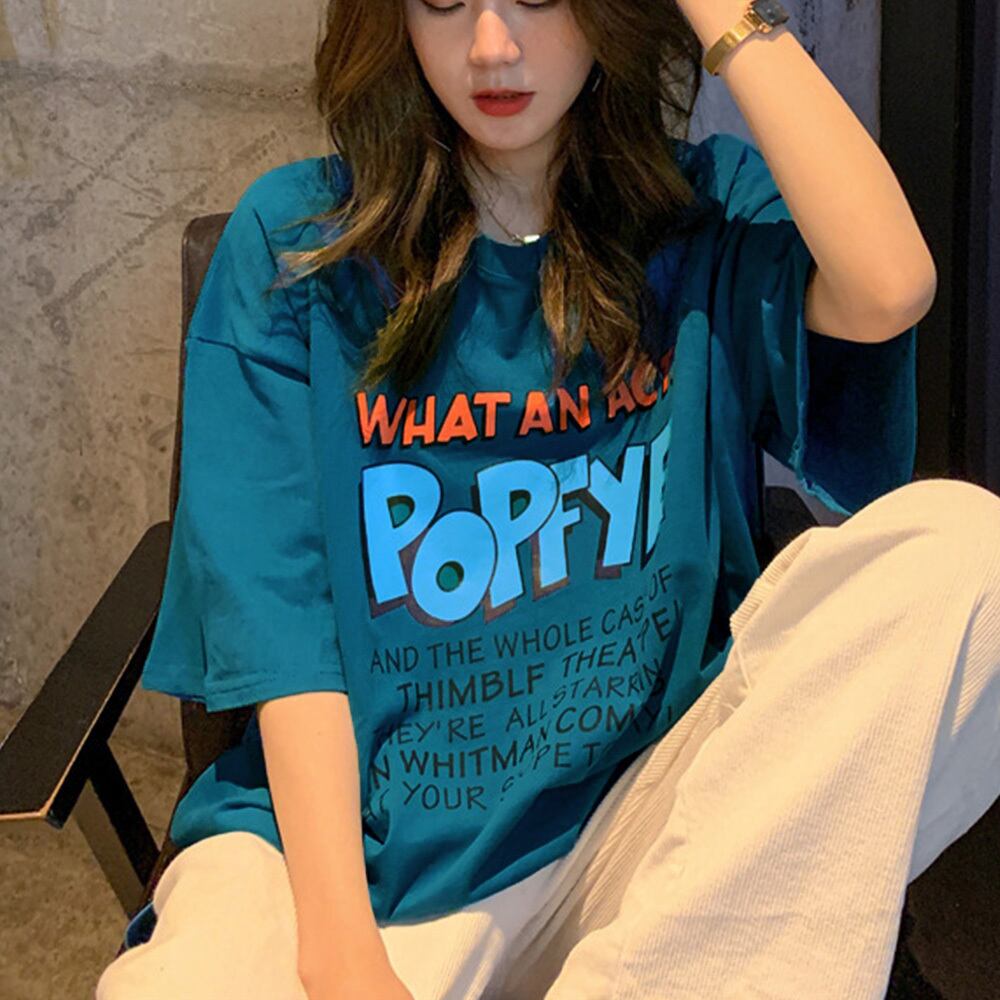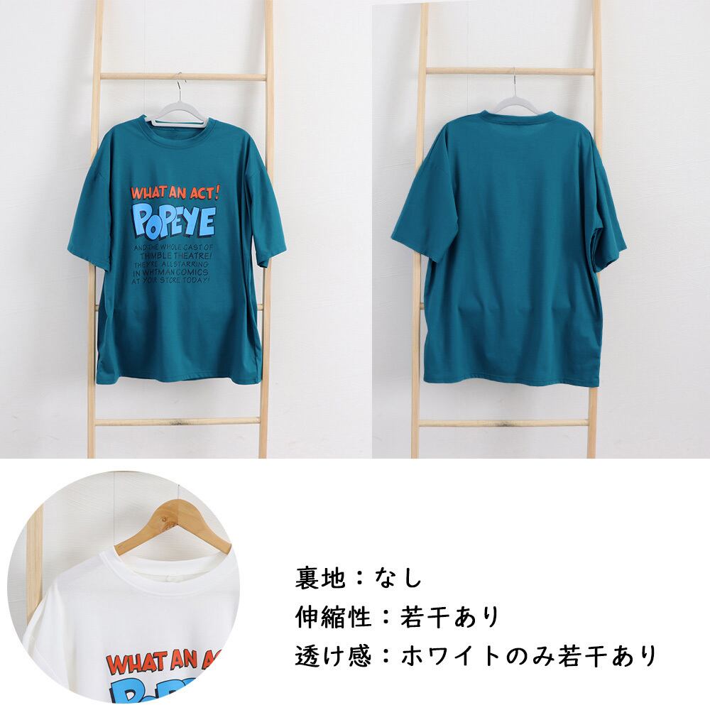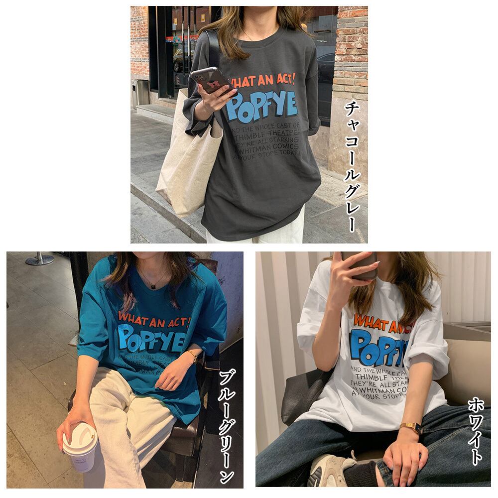 トップス ルーズ 英字ロゴ ロングTシャツ 着やせ 体型カバー プリントTシャツ 半袖 オルチャン 韓国ファッション夏服
