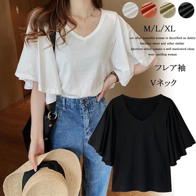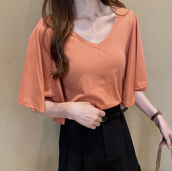 夏新作 Tシャツ トップス レディース 半袖シャツ Vネック