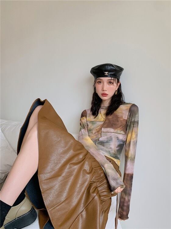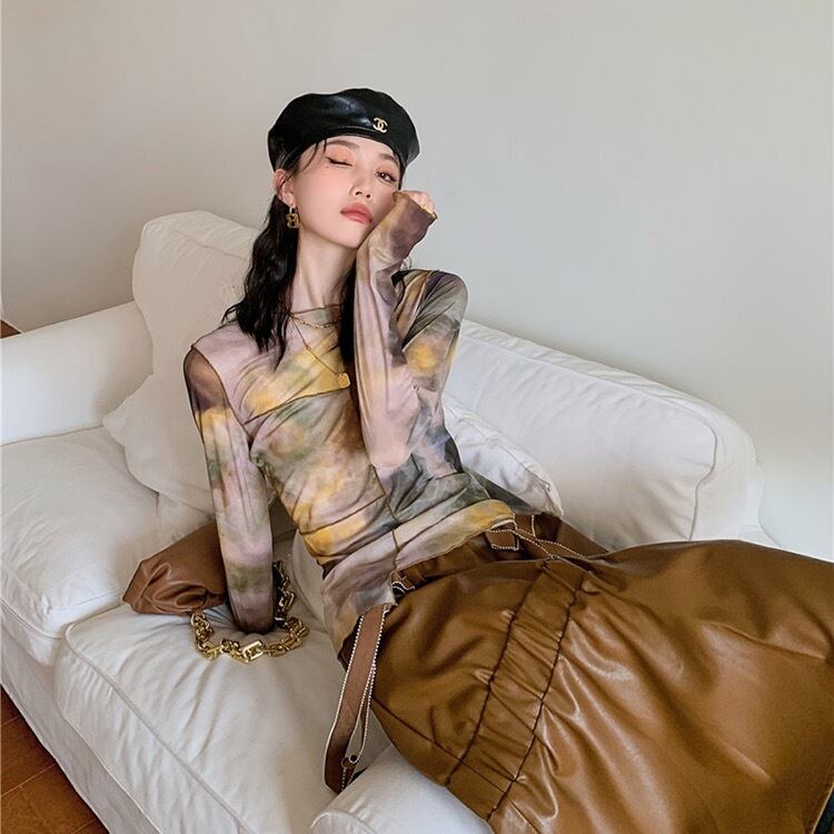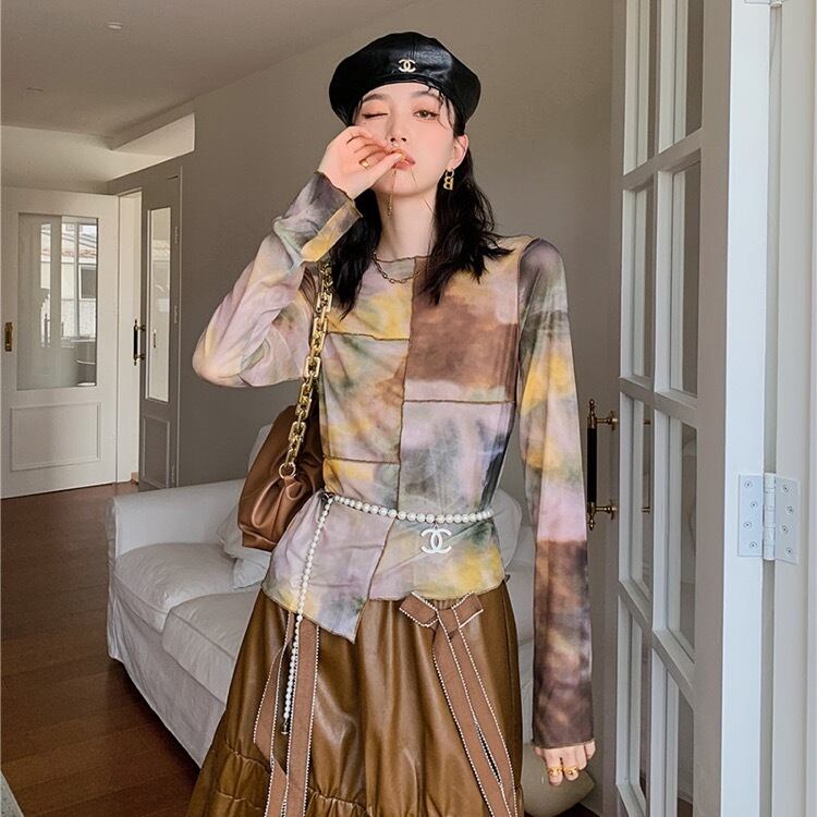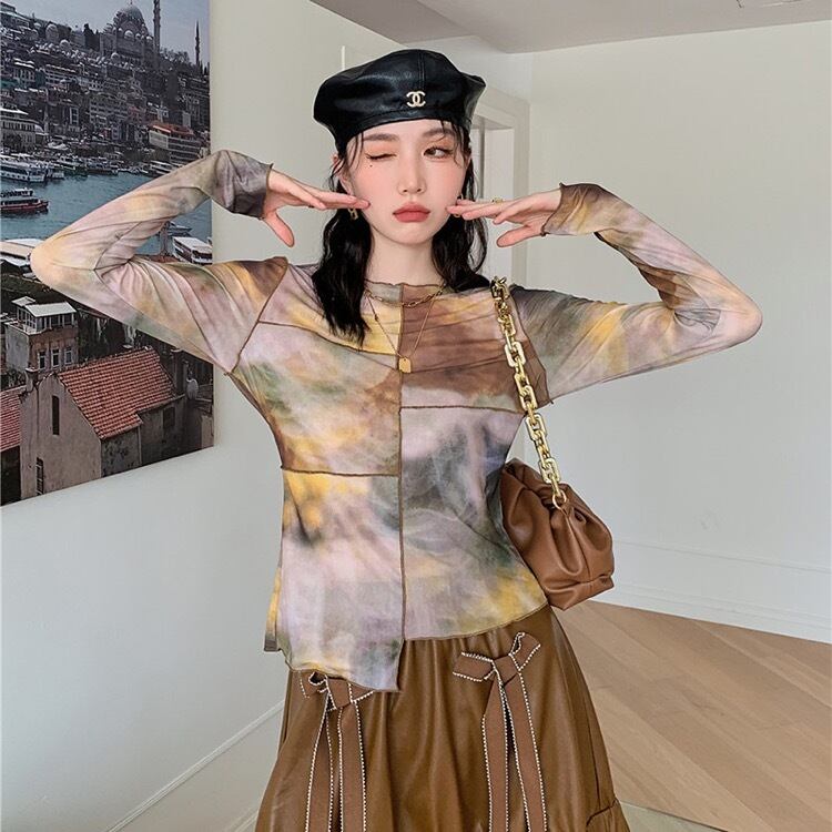トップス Tシャツ ロンT シャツ プリント 早秋 細身 スリム レディース
