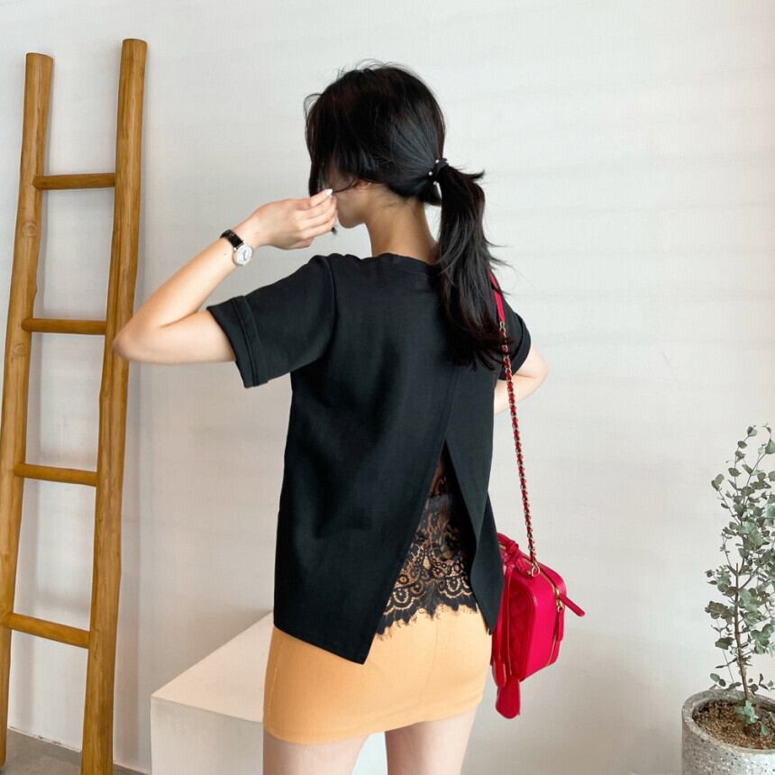 レース切替 Tシャツ 人気 tシャツ 半袖 レディース バックスリット おしゃれ ファッション