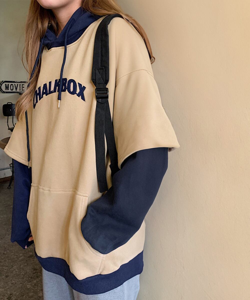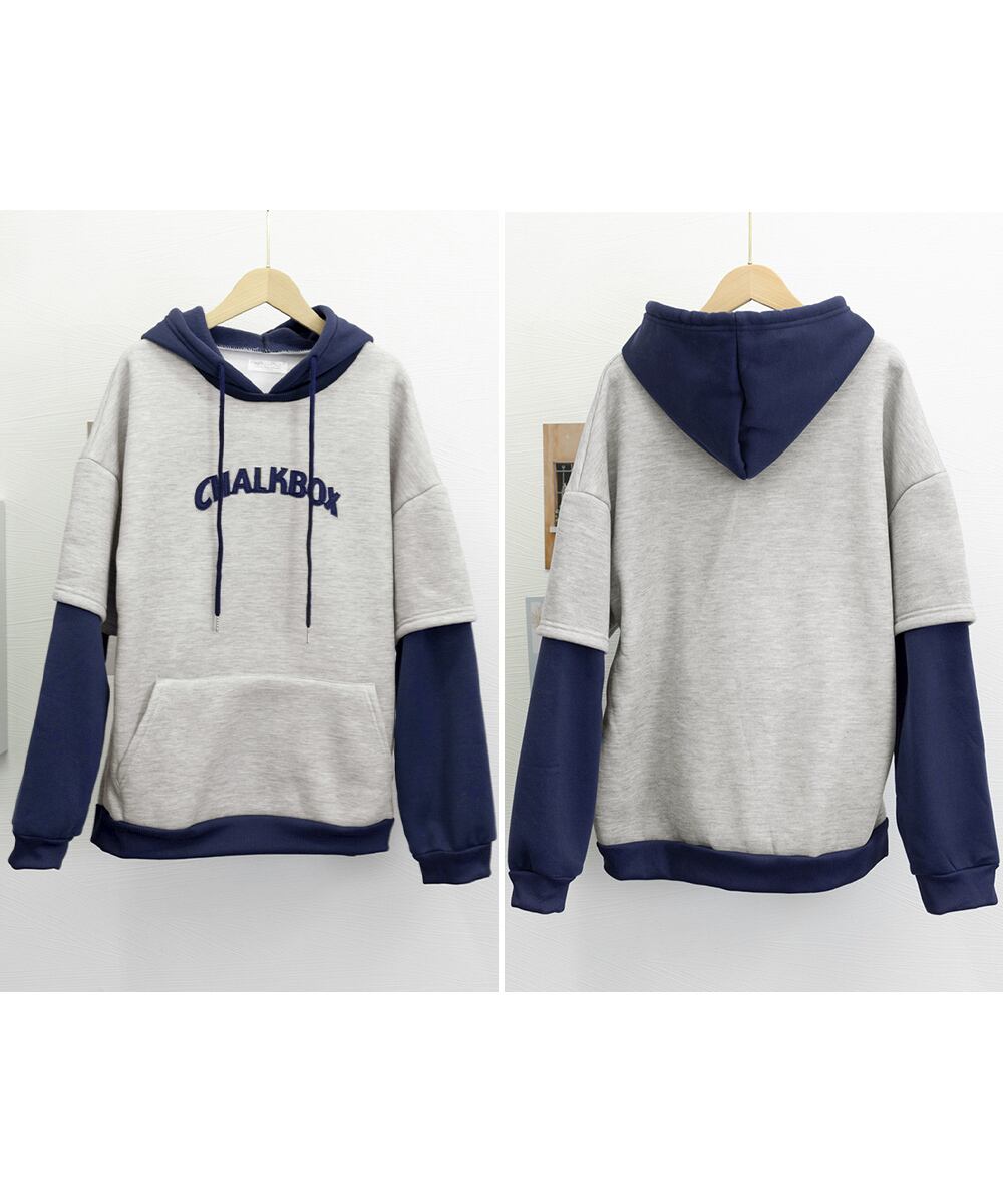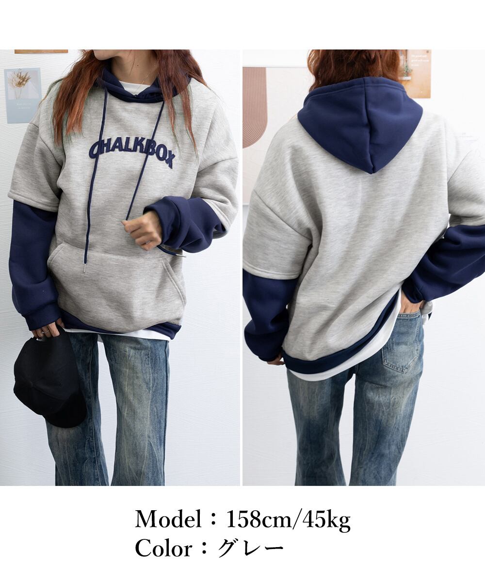 裏起毛 レイヤード風 パーカーレディース
