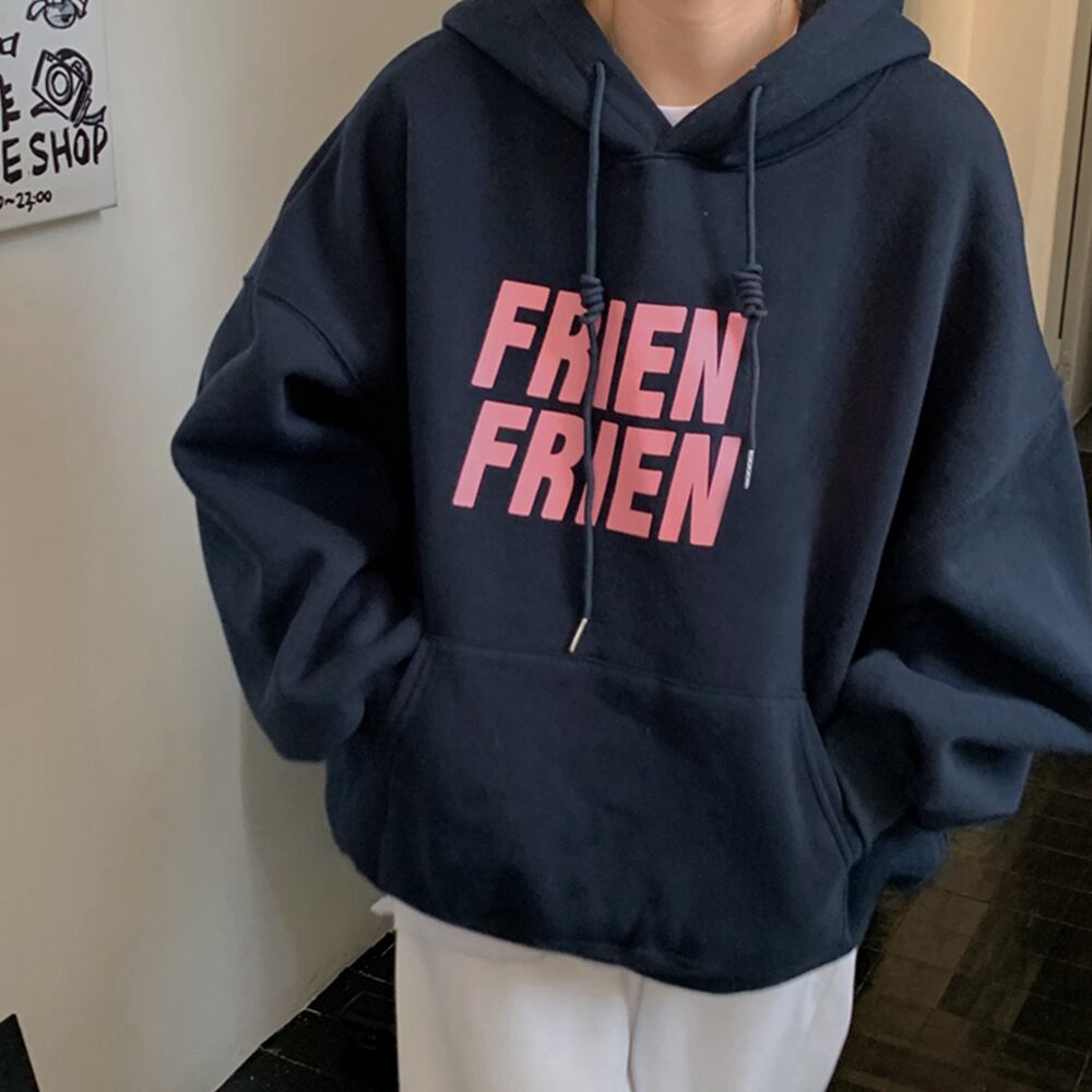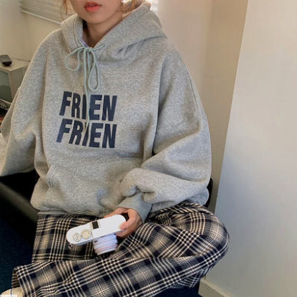スウェットトレーナー フード付き 長袖 プルオーバー フロント 英字プリント 着やせ トップス 通学 韓国風 オルチャン