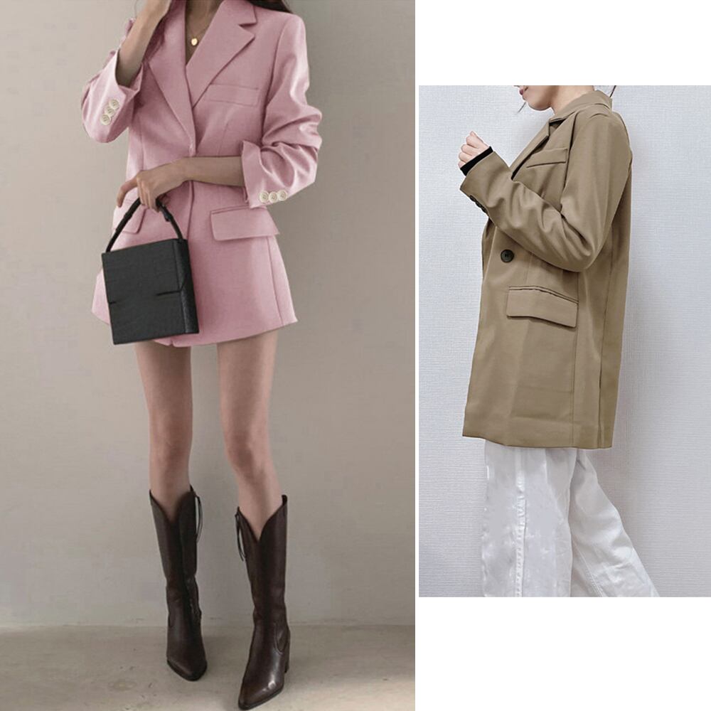 スーツジャケット オフィス 無地 韓国ファッション ポケット付きライトアウター 大人上品スーツ 上着 20代30代40代