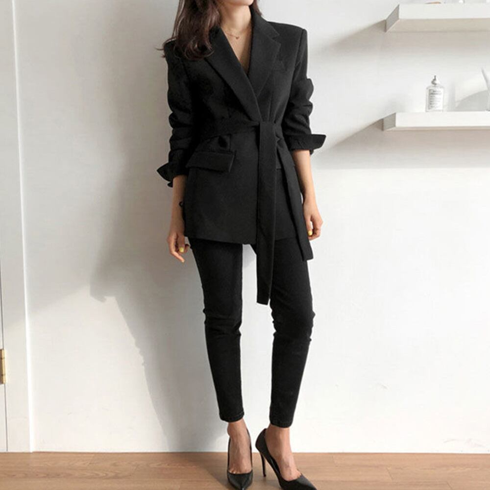 黒スーツ30代通勤 ライトアウター韓国 大人上品長袖着やせ