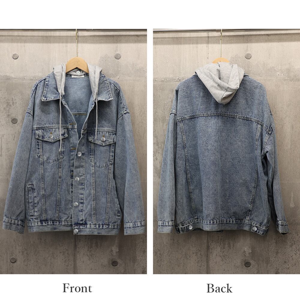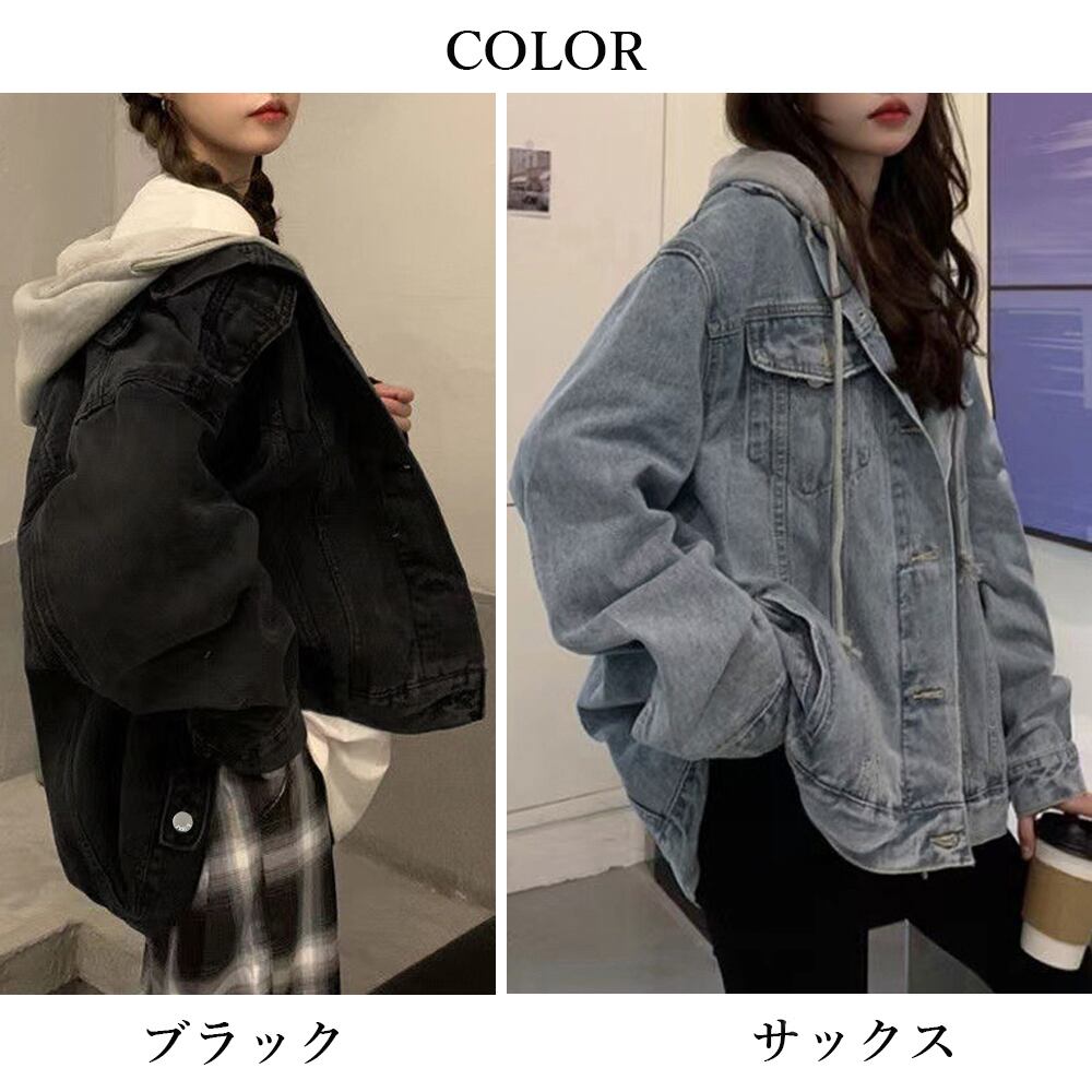 レディース ゆったり オーバーサイズジャケット 体型カバー ライトアウター おしゃれ Gジャン レイヤード風パーカー長袖