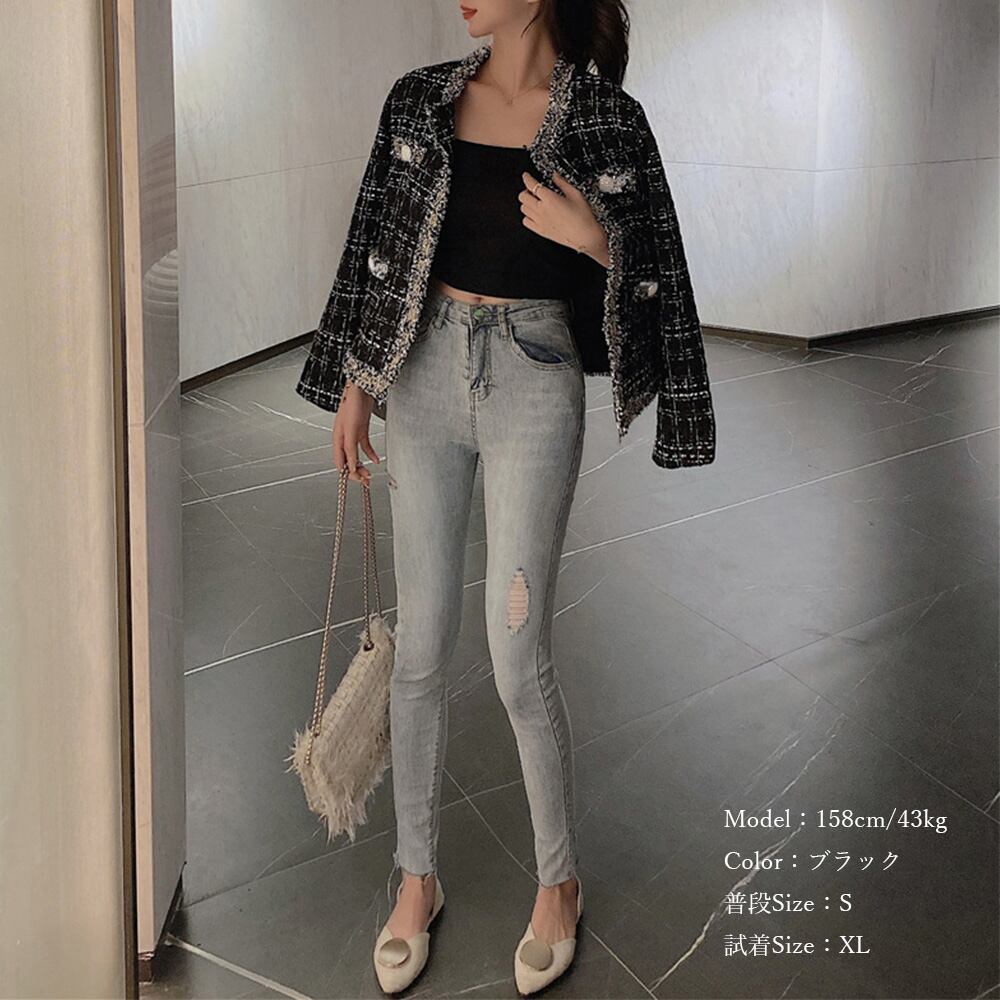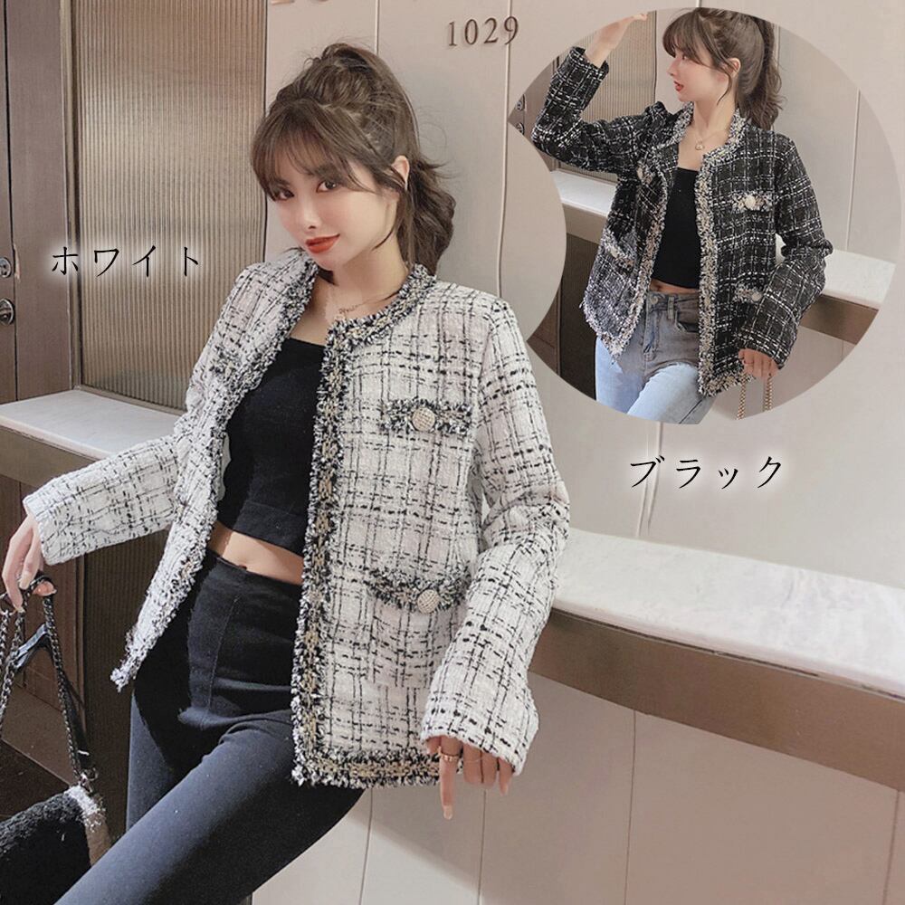 ツイード風 ジャケット レディース韓国風