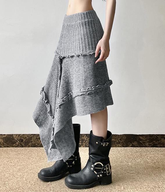 ボトムス 女 レディース ハイウエスト ニット ロングスカート 台型スカート