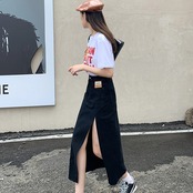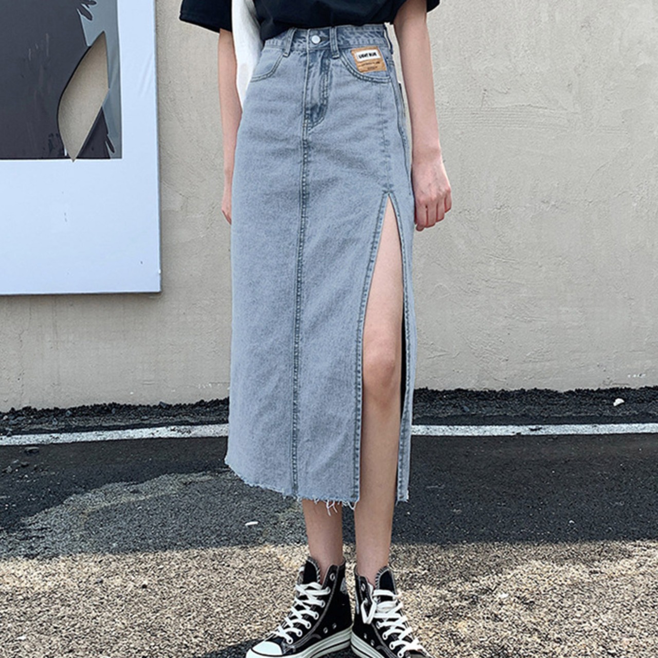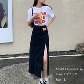 深めのスリットが入ったオシャレなデニムのロングスカート