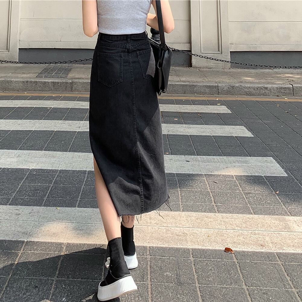 ハイウエスト 切りっぱなし ロングスカート レディース おしゃれ タイトスカート カジュアル カットオフデニム セクシー