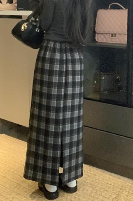 ボトムス 女 レディース ハイウエスト チェック柄 ロングスカート 台型スカート