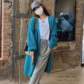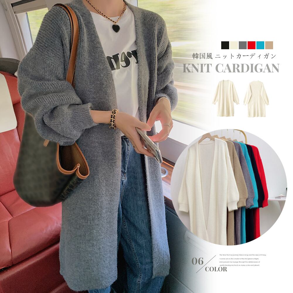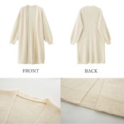 ゆったり羽織れるロング丈のボリュームスリーブトッパー仕様ニットカーディガン