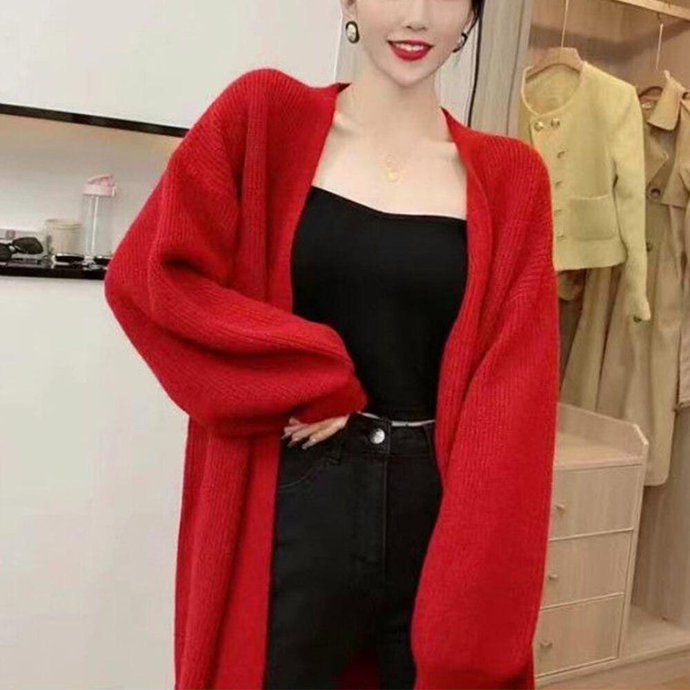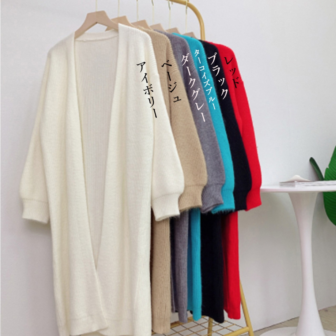 ロングカーディガン ドロショル ぽわん袖 膝丈 リブニットガウン 長袖 トッパーカーディガン 楽ちんアウター