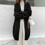 厚手 ニットコート 体型カバートップス ライトアウター 黒