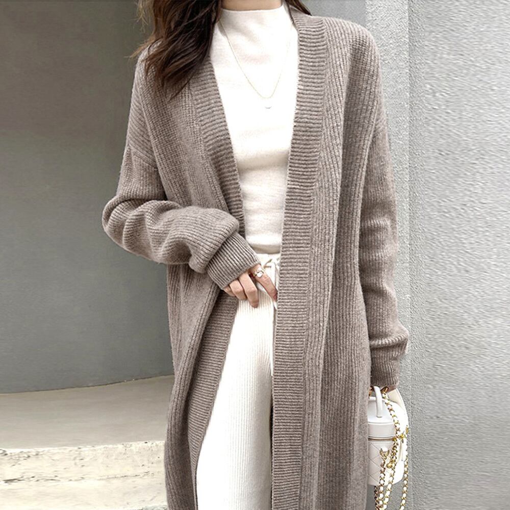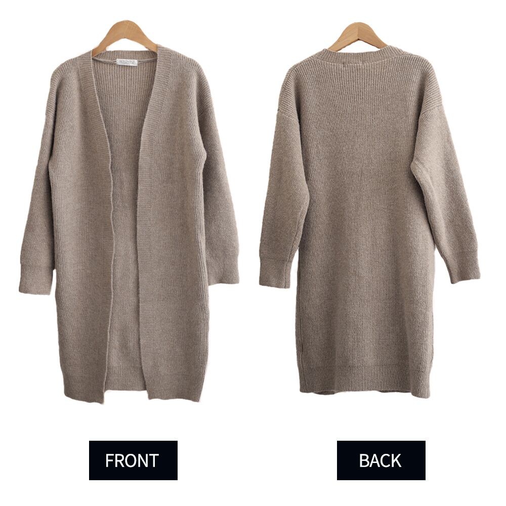 定番のカラー全4色、さっと羽織るだけで雰囲気のあるコーディネートへ導いてくれるロング丈のニットカーディガン