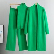 ハイウエスト スラックス 3点セット 怠惰な風 ニットトップス スリム ニットベスト