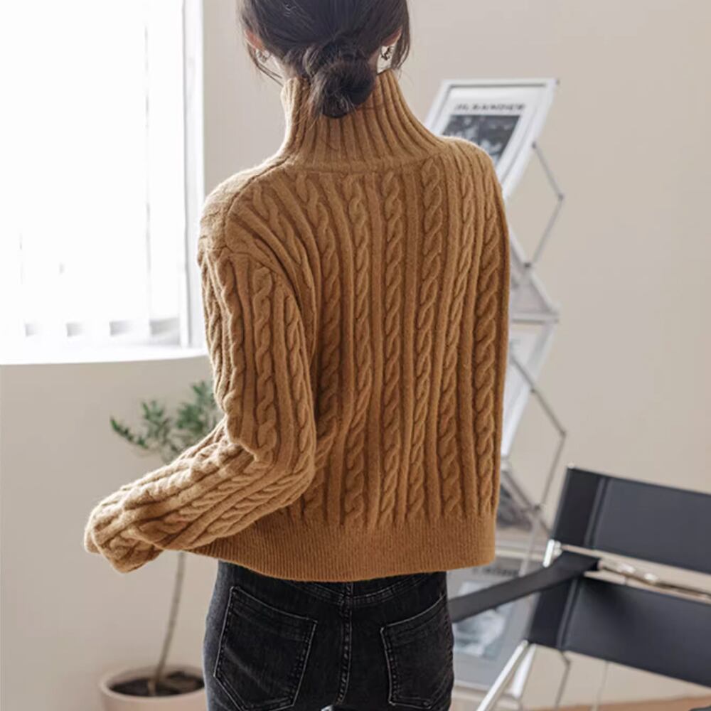 ケーブル編み ニットプルオーバー 韓国 タートルネック ニットセーター着やせ カジュアルきれいめ 20代30代40代無地