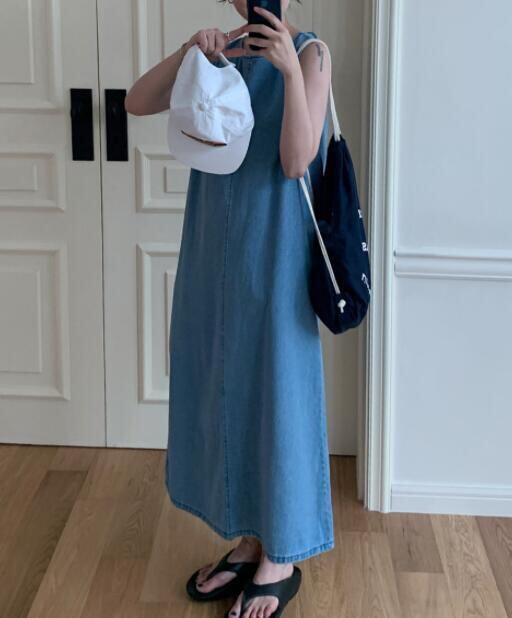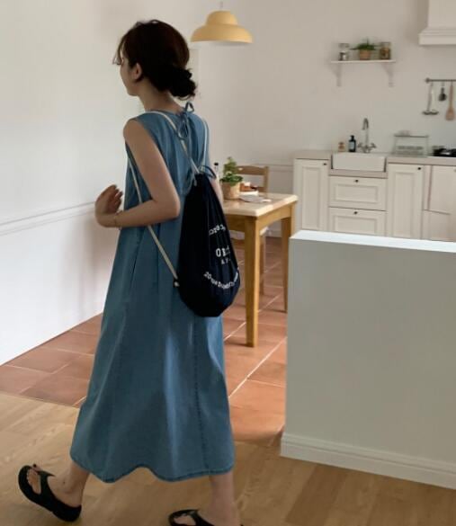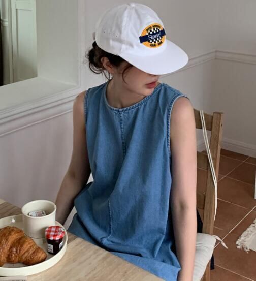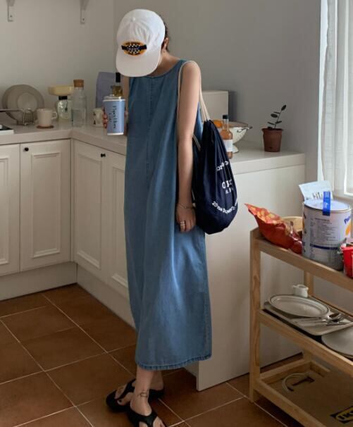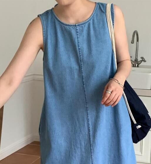 ガールズ トップス ワンピース ノースリーブ Aライン デニム チュニック 体型カバー