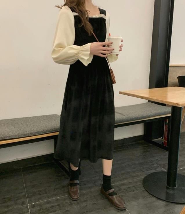 レディース ハイウエスト 長袖 ロング ワンピース 台型スカート