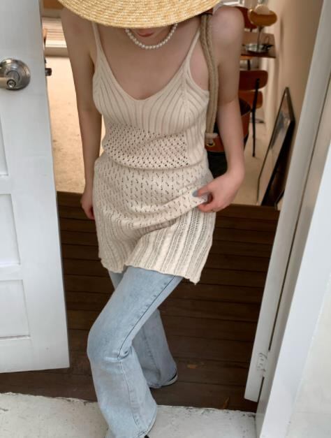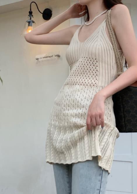レディース 袖なし ニット 吊りスカート ミニ ワンピース ドレス 台型スカート