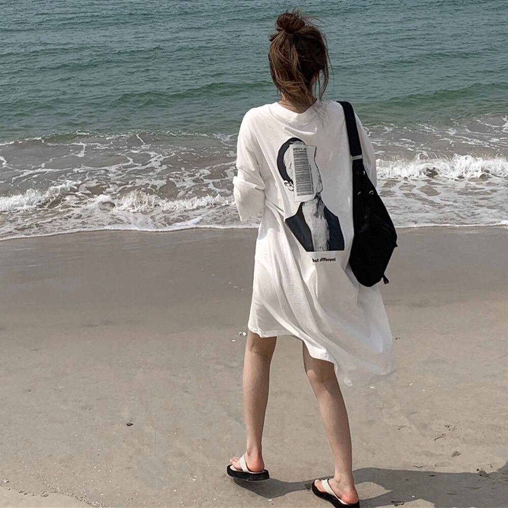 ルーズなシルエットがカジュアルで可愛いロング丈Tシャツワンピース