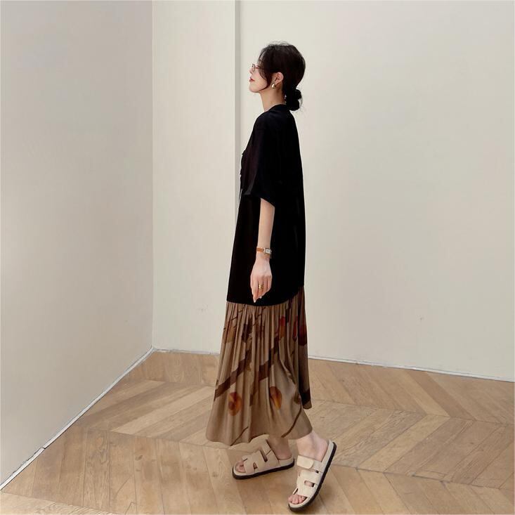 レディースワンピース シフトドレス ワンピ 苺 チュニック ドッキング ギャザースカート