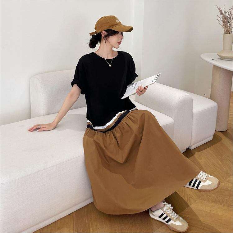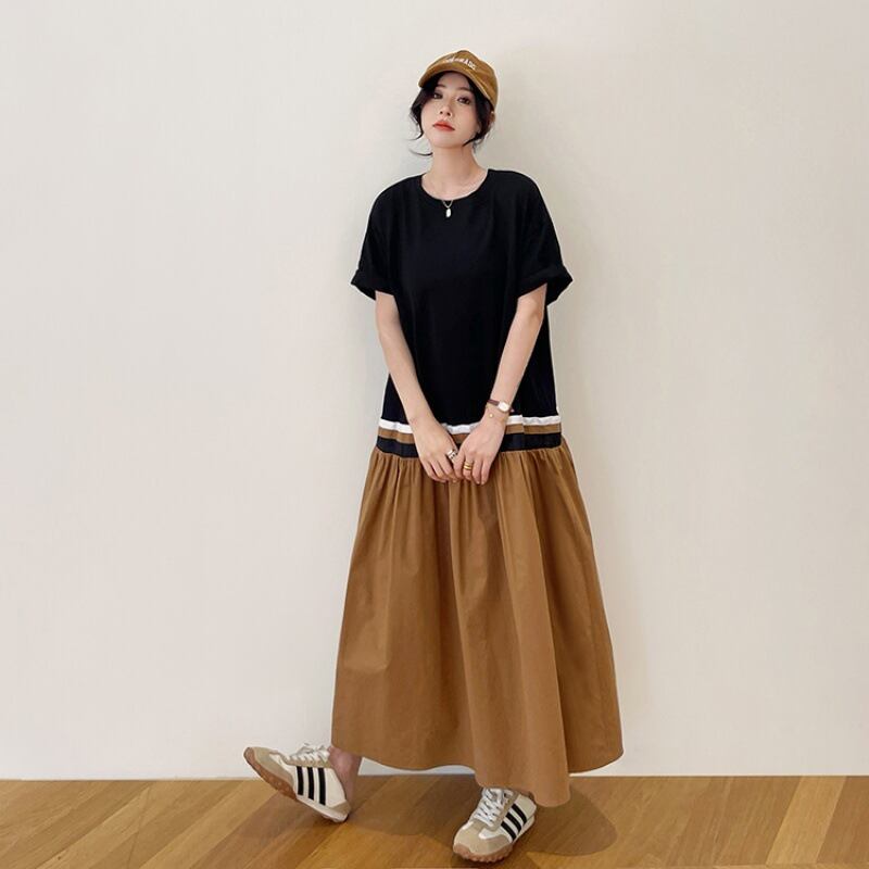 レディースワンピース シフトドレス ワンピ カラーブロック チュニック ドッキング