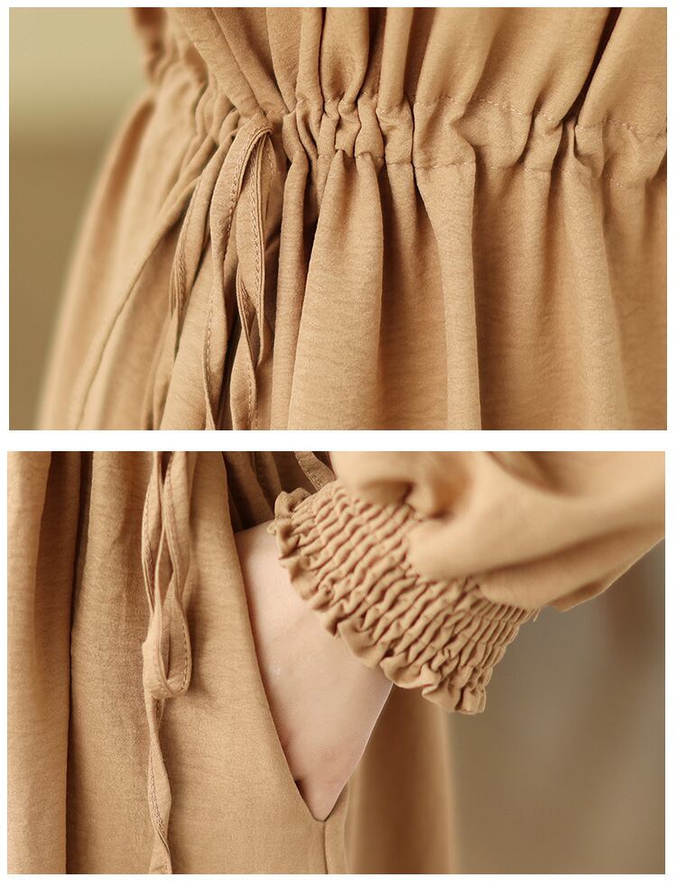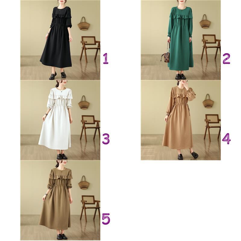 レディース ワンピース 長袖 チュニック シフトドレス オーバー ゆったり フリル 5色
