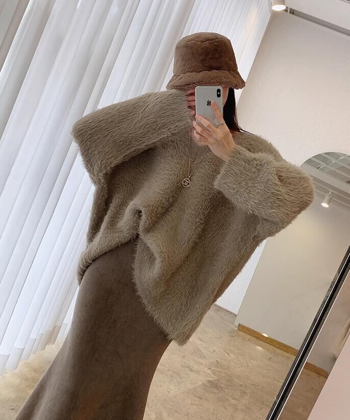 トップス ワンピース Vネック 起毛 ボア ミニスカート チュニック レディース
