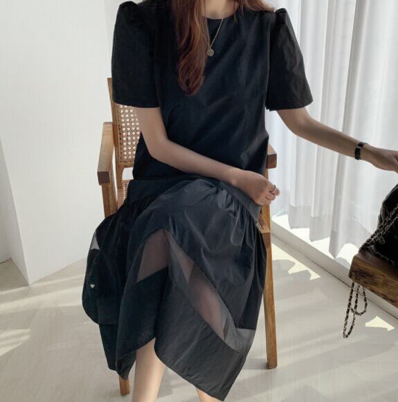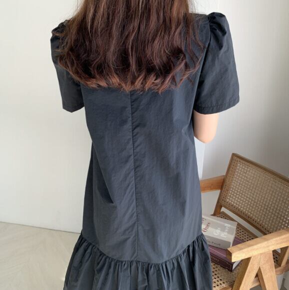 トップス ワンピース ドレス ロング丈 チュニック 半袖 丸襟