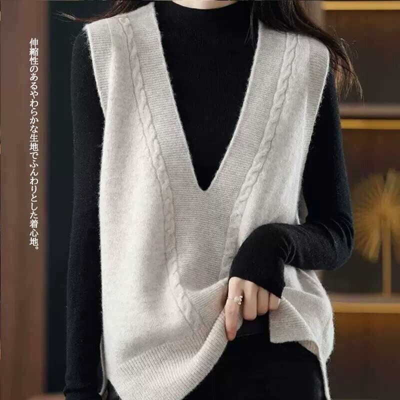 レディース ニットベスト レイヤード 重ね着 トップス セーター チュニック トレンド ブラック