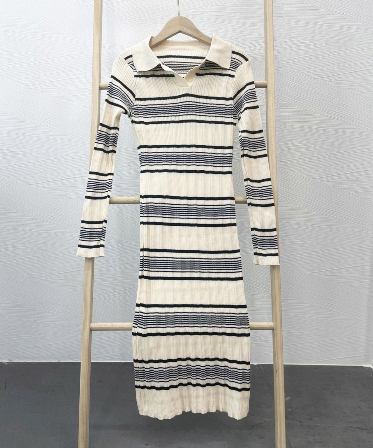 トレンドのポロデザインとボーダー柄がカジュアルコーデにぴったりなワンピース