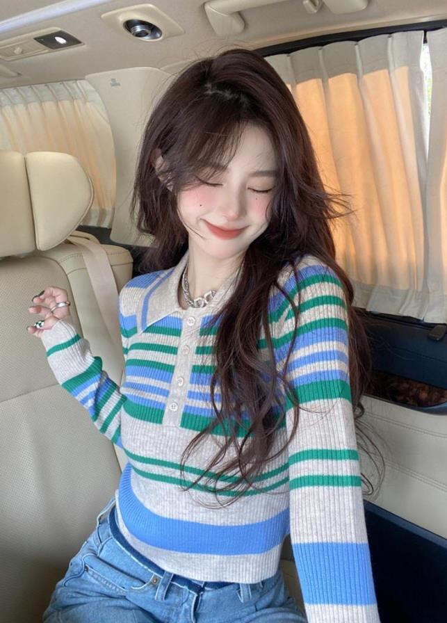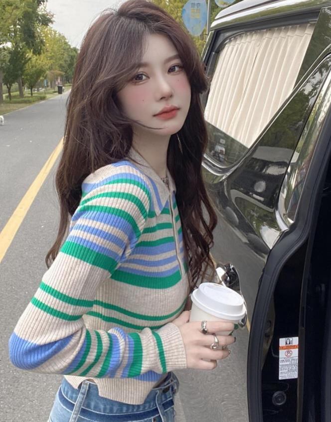 春秋新作 レディース 女 長袖 ボーダー柄 ニット Tシャツ トップス インナー カットソー 2色