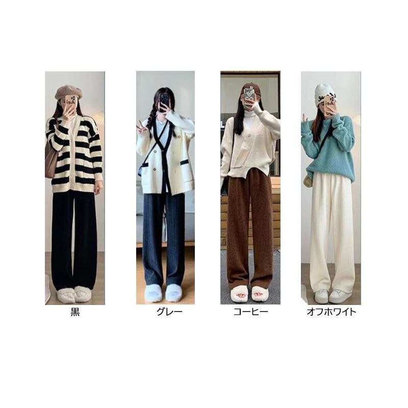 新作 INS トレンド レディース ストライプ 裏起毛 ロングパンツ 裏ボア ワイドパンツ ボトムス