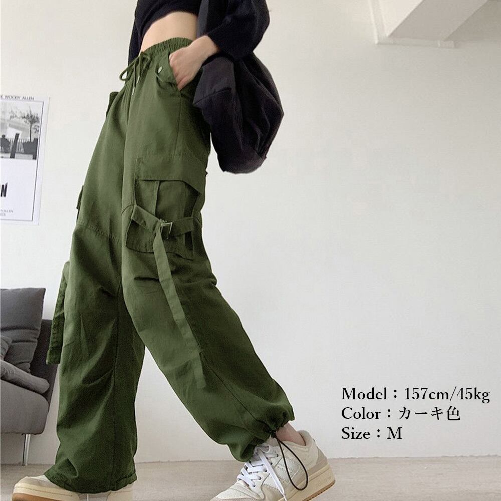 ゆったり ミリタリーパンツ ウエストゴム ワークパンツ イージーワイド ストレートパンツ レトロ カジュアルパンツ 韓国