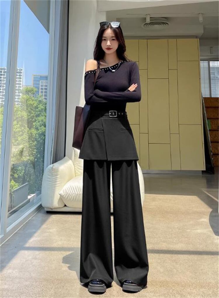 フェイク2ピース キュロット スラックス ワイドパンツ スーツパンツ 秋 ゆったりする