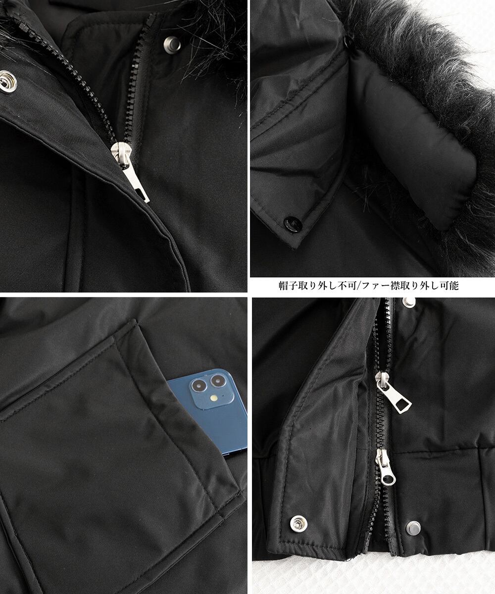 フードについているエコファーは取り外し可能なので、ゴージャスにもスッキリにも簡単にアレンジ可能