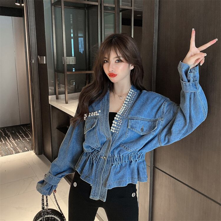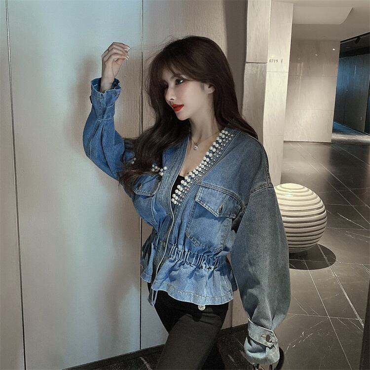 Vネック スリム コート エレガント 短いスタイル レディース 個性 デニムジャケット