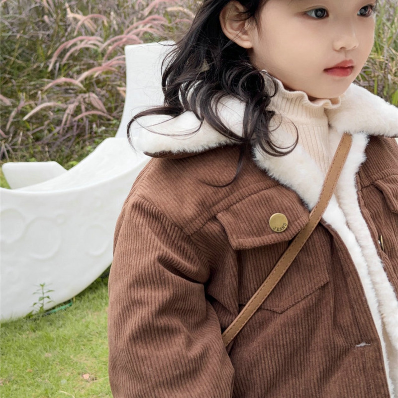 ユニセックス 子供服 秋冬新作 裏ボア裏起毛 厚手 コーデュロイ 暖かく ジャケット 防寒 上着 5-13