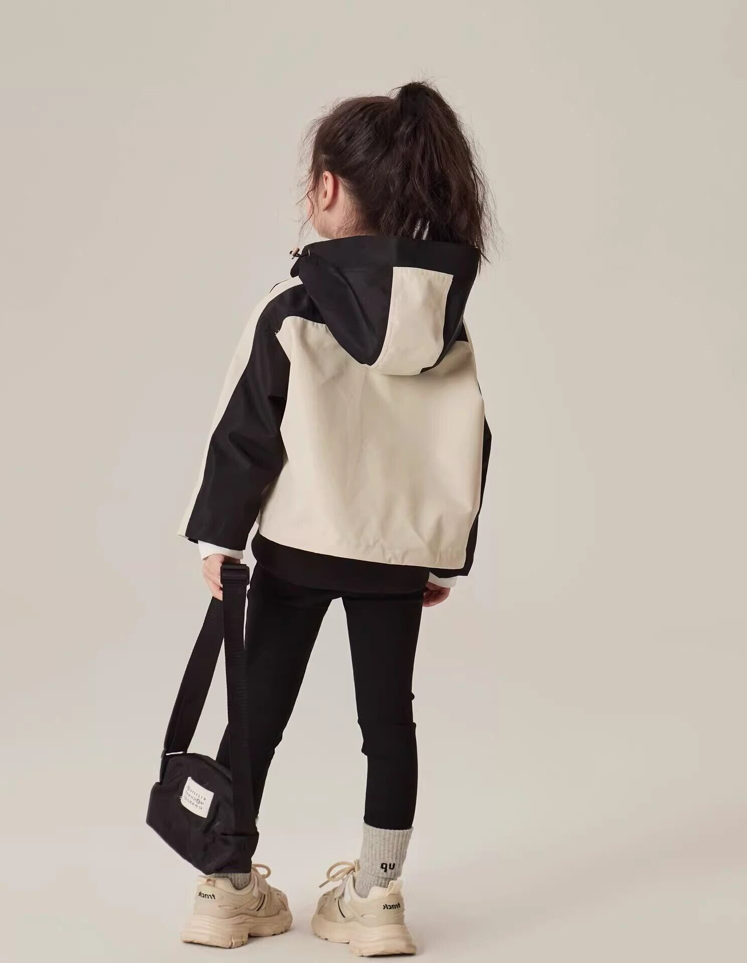 ユニセックス 子供服 秋冬 厚手 防寒 ドッキング キルティング フード付ジャケット 綿入れ上着 7-15