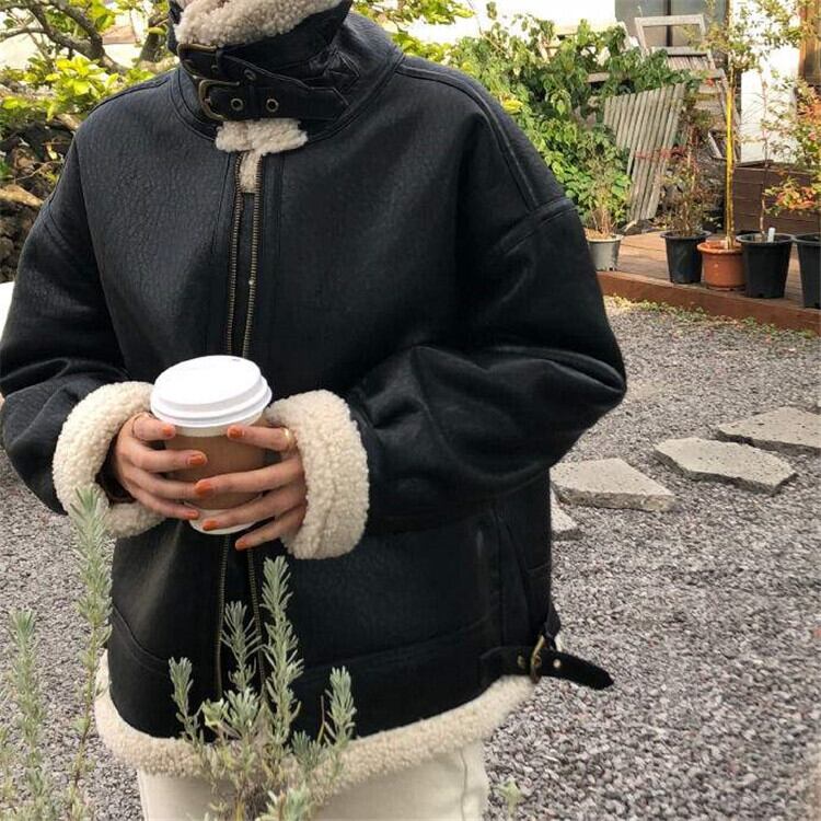 韓国ファッション レザー オートバイ服 ジャケット 毛皮 チェスターコート