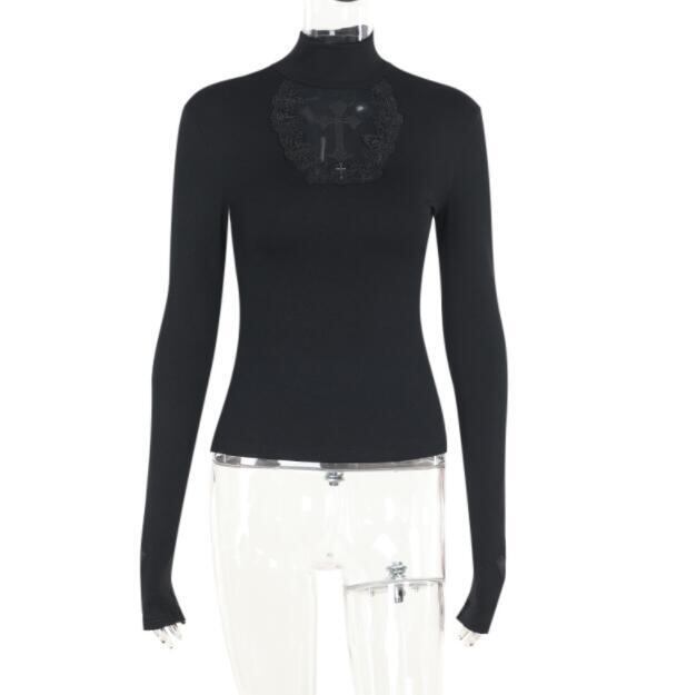 トップス レディース Tシャツ ハイネック 長袖 スリム