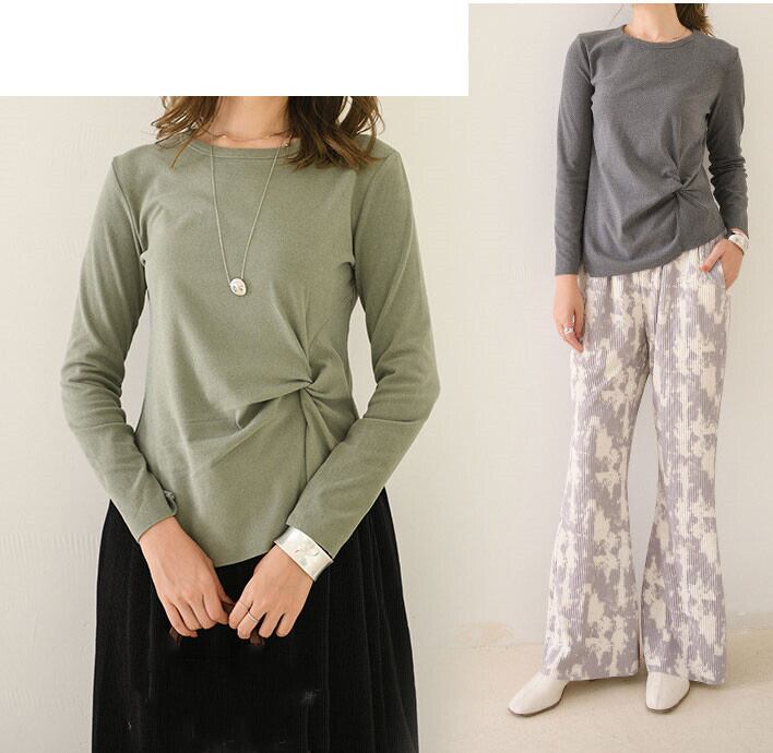 長袖シャツ トップス レディース 新作 Tシャツ インナー 不規則デザイン 着痩せ