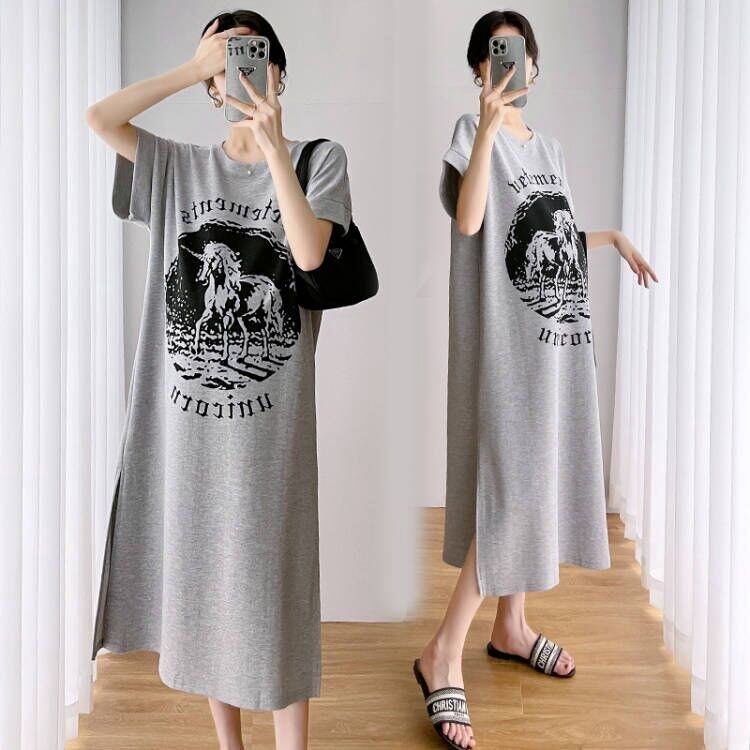 大きいサイズ春夏新作 韓国 レディース ファッション プリント Tシャツ ワンピースLL-4L