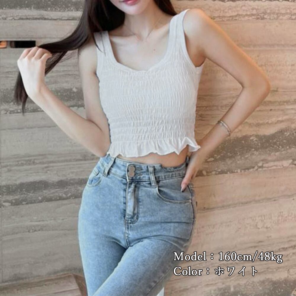 カップ付きシャーリングタンクトップ 幅広