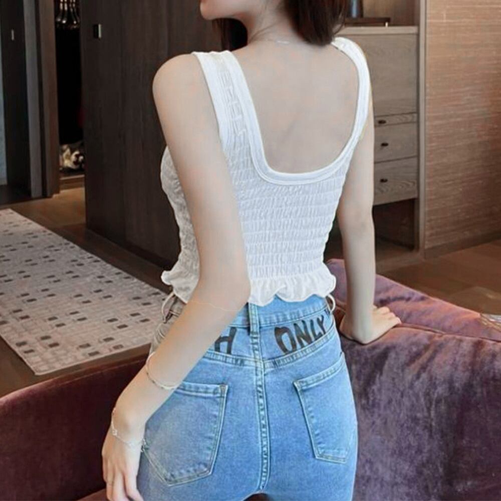 レディース短丈タンクトップ 美胸 大人可愛い インナートップ白 バックシャンスタイルインナー 重ね着 Uネック 背中見せ